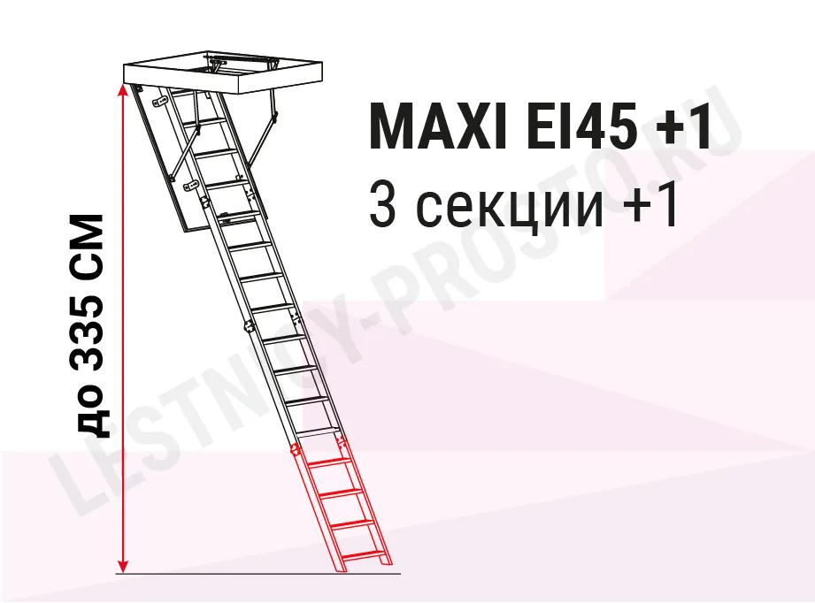Высоту лестницы можно увеличить с помощью дополнительной секции до 3350 мм. (секция покупается отдельно)