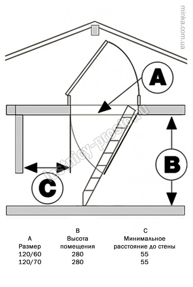Чердачная лестница MINKA STEEL 120×70 см, h-280 см