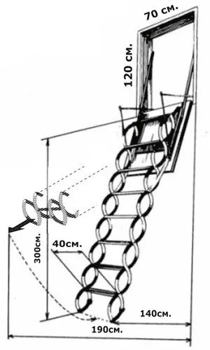 Чердачная лестница с люком OMAN NOZYCOWE VERTICALE 70х120 см, h-300 см