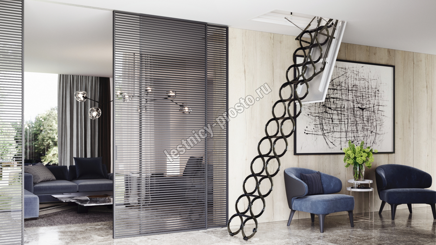 Ступени лестницы изготовлены из анодированной стали.