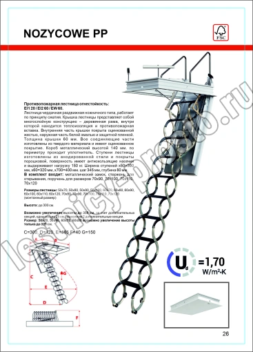 Противопожарная чердачная лестница с люком LSF OMAN NOZYCOWE PP 70х120 см, h-300 см