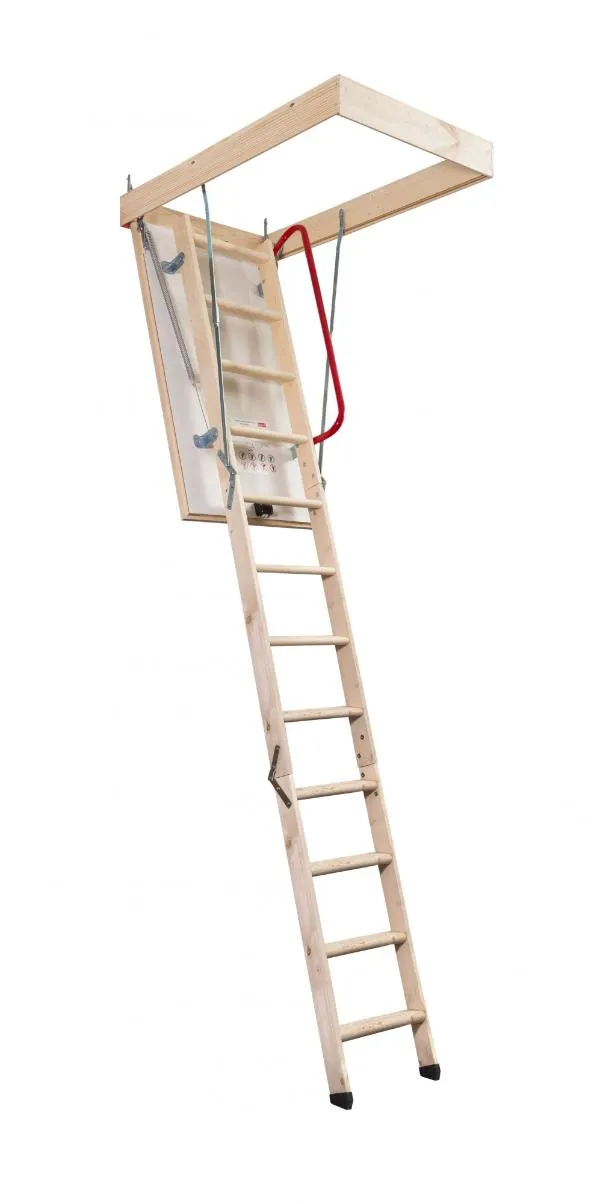 Лестница выдерживает нагрузку до 150 кг, при этом сама она легкая - ее просто складывать и раскладывать одним касанием руки. Несмотря на простоту, она оснащена поворотным замком, надежно фиксирующим люк в закрытом состоянии.