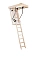 Лестница раздвижная двухсекционная, изготовлена из сосны. Термоизоляционная крышка типа "сэндвич" имеет усиленную теплозащиту, облицована с двух сторон ДСП белого цвета. По контуру короба имеется уплотнитель. Все металлические элементы лестницы покрыты порошковой краской, ступени лестницы имеют антискользящие насечки и закреплены в столярное соединение «ласточкин хвост», что позволяет выдерживать нагрузку 150 кг. При раскладывании лестницы нет вылета за пределы короба, что позволяет использовать эту модель лестницы в таких помещениях, где невозможно использовать чердачные лестницы с большим разбегом открытия. Удобна для эксплуатации на большой высоте. Деревянный стержень для открывания лестницы в комплекте..