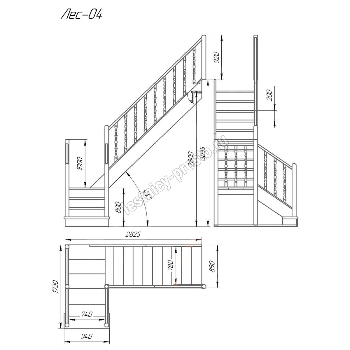 Высота лестницы 2800 - 3000 мм