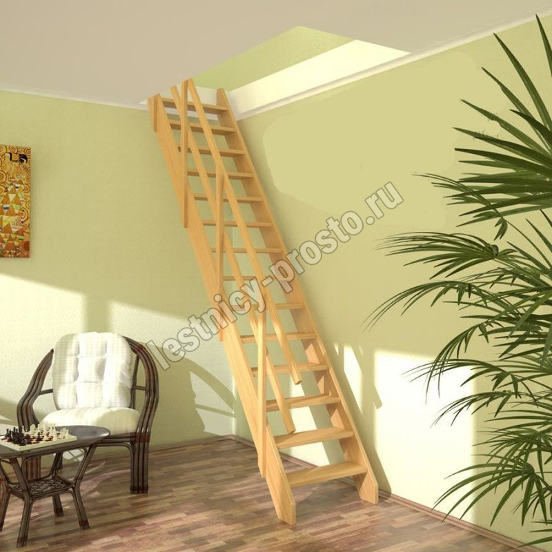 Лестница деревянная для дачи из хвои Стандарт ЛМ-03