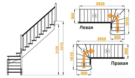 Высота лестницы 2925 - 3120