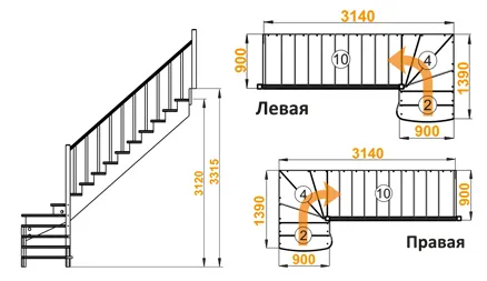 Высота лестницы 3120 - 3315