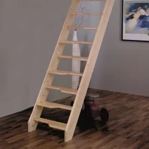 Базовый комплект включает в себя деревянные элементы лестницы и ограждения без какого-либо покрытия.