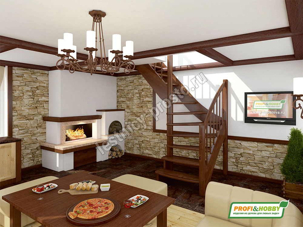 Ступени и поручень лестницы изготовлены из бука, остальные элементы из сосны.