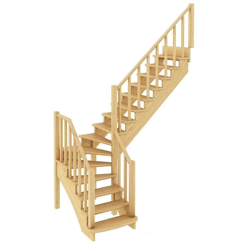 Ступени и поручень лестницы изготовлены из дуба, остальные элементы из сосны.