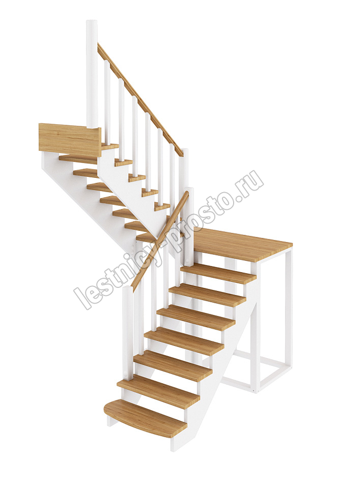 Ступени и поручень лестницы выполнены из дуба, остальные элементы из сосны. Возможно изготовление данной модели полностью из дуба.