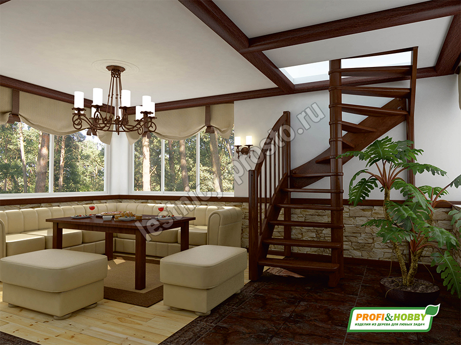 Ступени и поручень лестницы изготовлены из дуба, остальные элементы из сосны.
