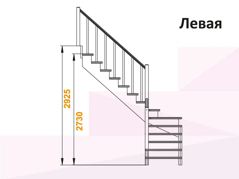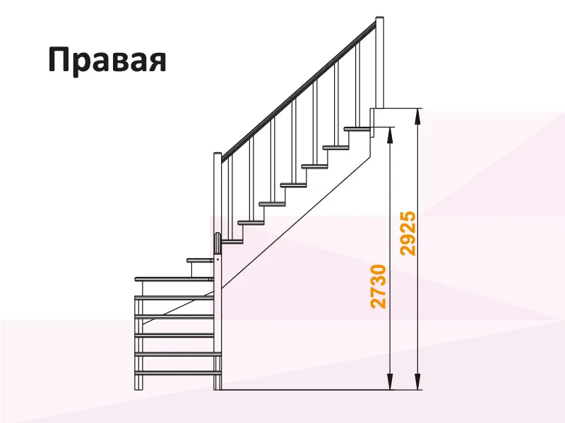 Лестница из сосны К-001М/2 под покраску с подступёнками