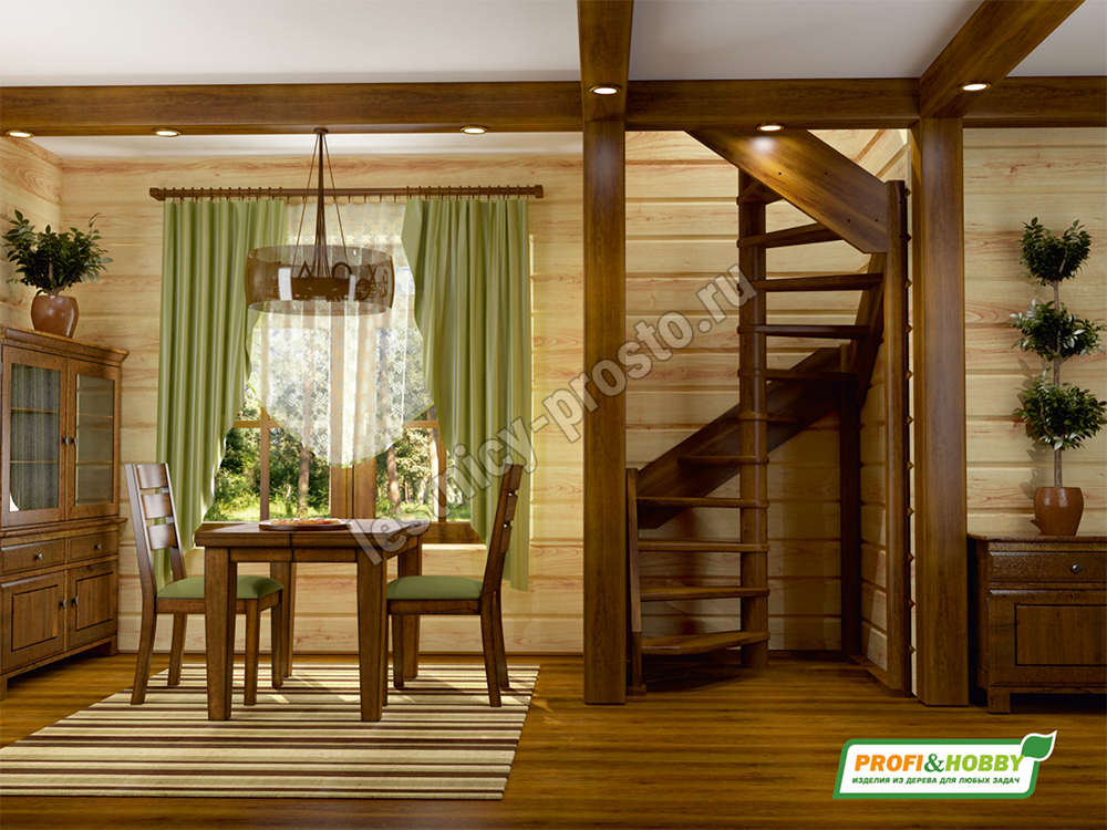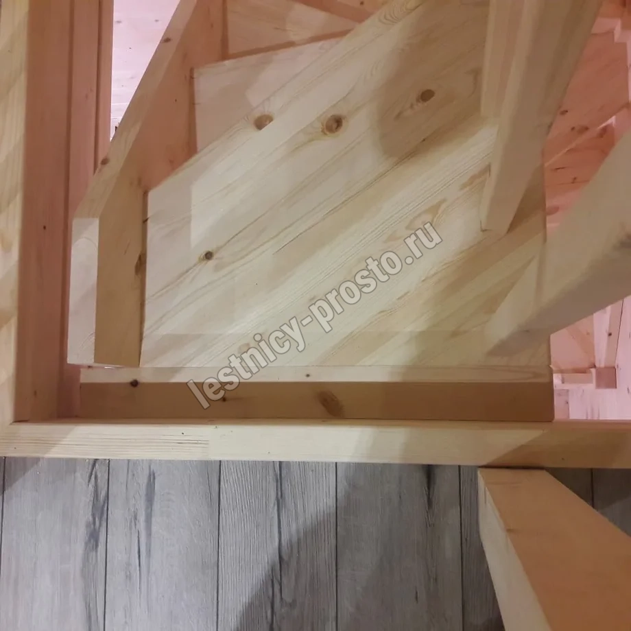 В производстве лестницы ЛС-1.2хм под покраску используется сосна с небольшими изменениями цвета, что практически не влияет на ее механические свойства и почти незаметно при покраске в темные цвета. Базовый комплект включает в себя деревянные элементы лестницы и ограждения без какого-либо покрытия.