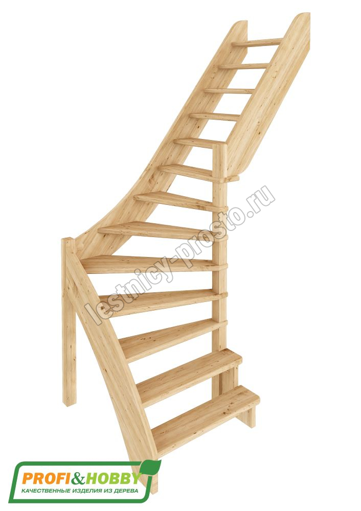 Базовый комплект включает в себя деревянные элементы лестницы без какого-либо покрытия.