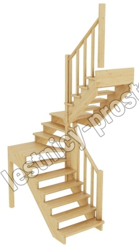 Ограждение лестницы с одной стороны. Базовый комплект включает в себя деревянные элементы лестницы и ограждения без какого-либо покрытия.