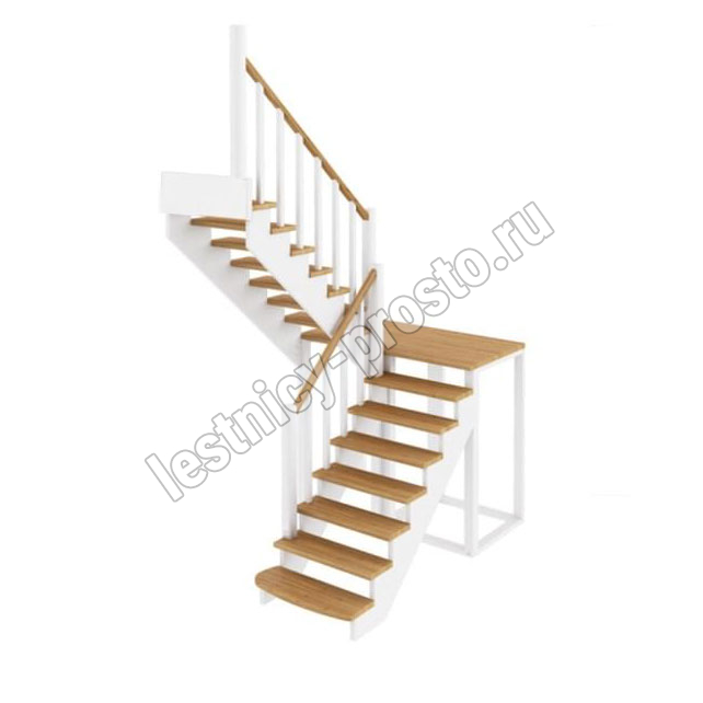 Ступени и поручень лестницы выполнены из ясеня, остальные элементы из сосны. Возможно изготовление данной модели полностью из ясеня.