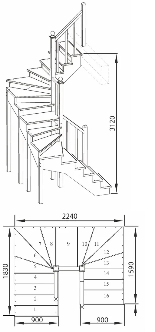 Высота лестницы 3120 мм
