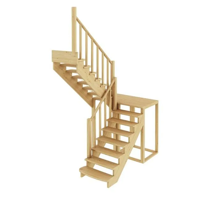 Классическая модель поворотной лестницы раскрывает всю природную красоту натуральных материалов. У лестницы комфортная высота шага, удобный широкий марш и угол подъема. Лестница изготавливается под заказ. Возможны варианты подходящие под разные размеры проёма. Базовое ограждение можно заменить на кованое или точеное. В дополнение можно приобрести бортики, подступени, или мини-подступени. Первую ступень можно заменить на пригласительную - лекальную. Стоимость указана для лестницы без какого-либо покрытия.