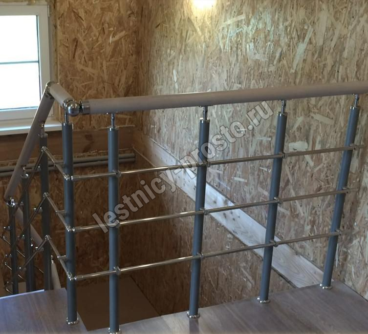 Комплект ограждений для П-образной лестницы PROSTO MONO из 11 ступеней.
