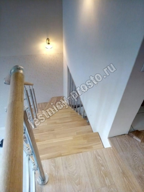 Ограждение для П-образной лестницы PROSTO DUE/DOUBLE с нержавеющими стойками и струнами
