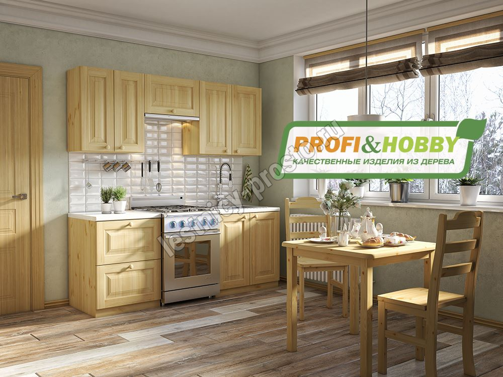 Небольшой кухонный гарнитур из 100% массива сосны шириной всего 2 и высотой 2,32 метра (верхние шкафы 90 см). Один из самых распространенных проектов кухни, который подойдёт для небольшой квартиры, загородного дома, гостиницы или хостела. Цвет на выбор - более 20 вариантов (при заказе кухни в нашем интернет магазине просьба указывать название цвета в комментариях).