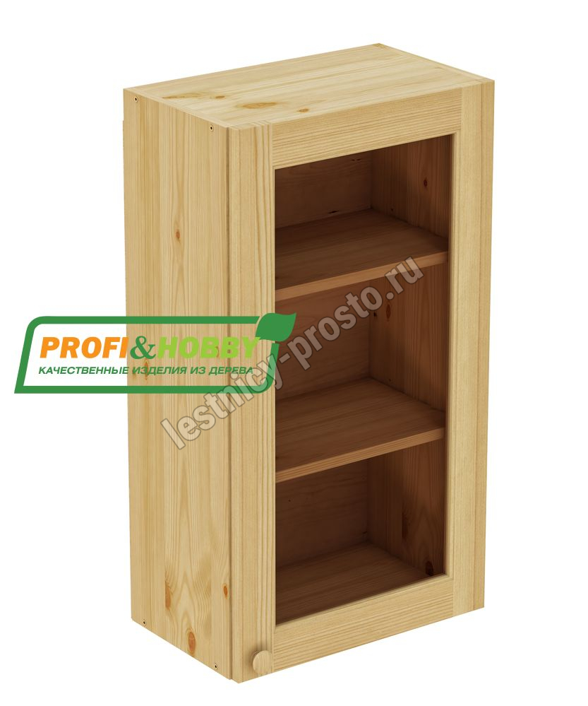 Шкаф навесной 500 х 300 х 900 под стекло, сосна, бесцветный акриловый лак