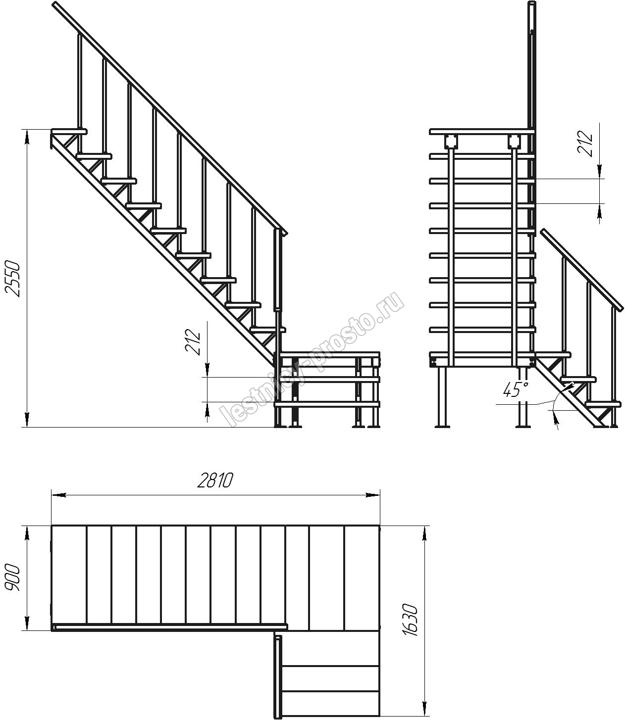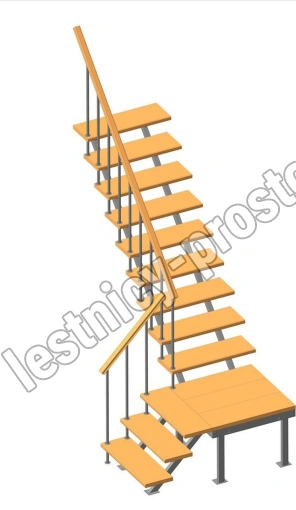 Универсальная лестница на металлическом каркасе с поворотной площадкой. Идеально дополнит любой интерьер, имеет современный вид и удобна в использовании. Монтаж осуществляется силами двух человек на объекте по указаниям, приведенным в паспорте на лестницу.