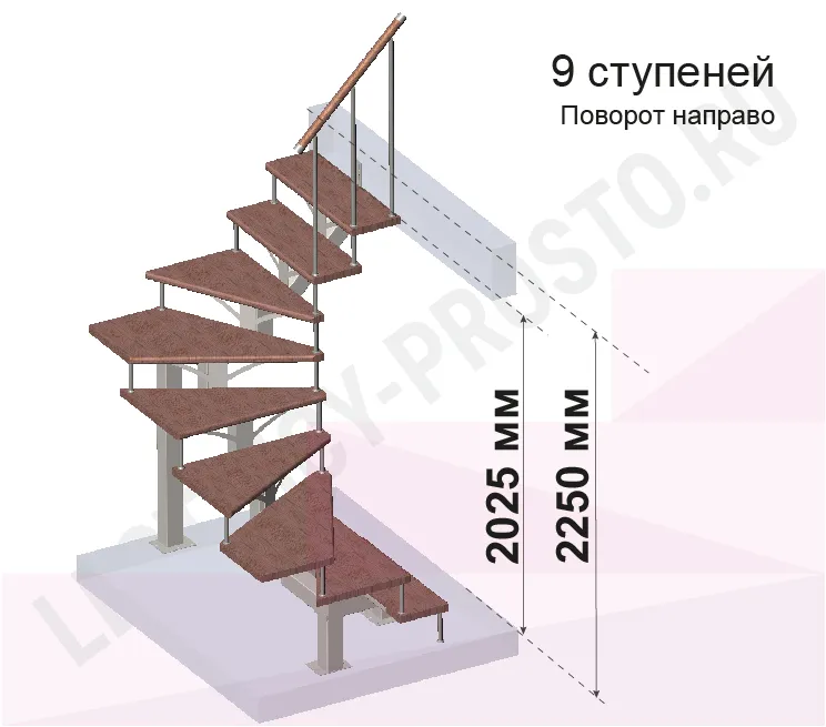Высота лестницы 2025 - 2250 (9 ступеней) мм