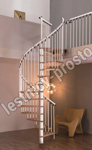 Винтовая лестница SPIRAL WOOD d120 см. белая, лакированный дуб