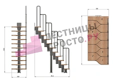 Лестница Prosto Urban Black гусиный шаг 700 мм, h198-288 см (11 ступеней), дуб