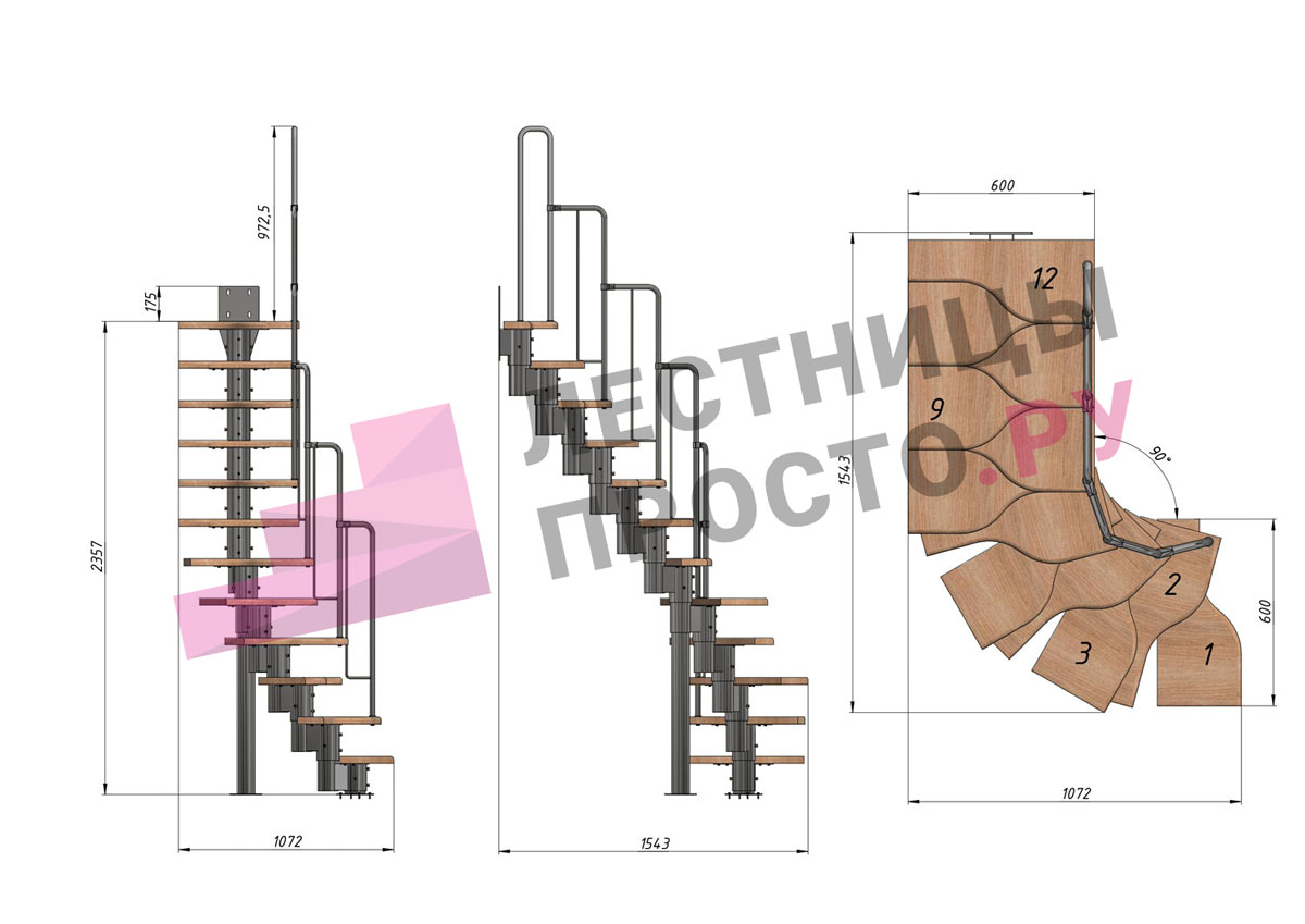 соответствует картинке, но вы не ограничены в его выборе. Лестницу можно приобрести и без ограждения, и с любым другим. Устанавливать на такую лестницу можно почти всё, начиная от классических деревянных балясин и заканчивая эксклюзивными коваными изделиями.