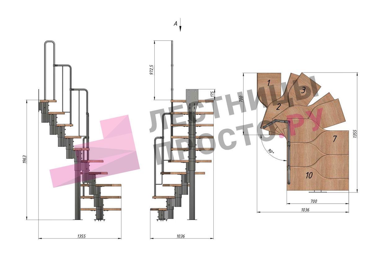 Лестница Prosto Urban White гусиный шаг 700 мм, h180-264 см (10 ступеней), бук