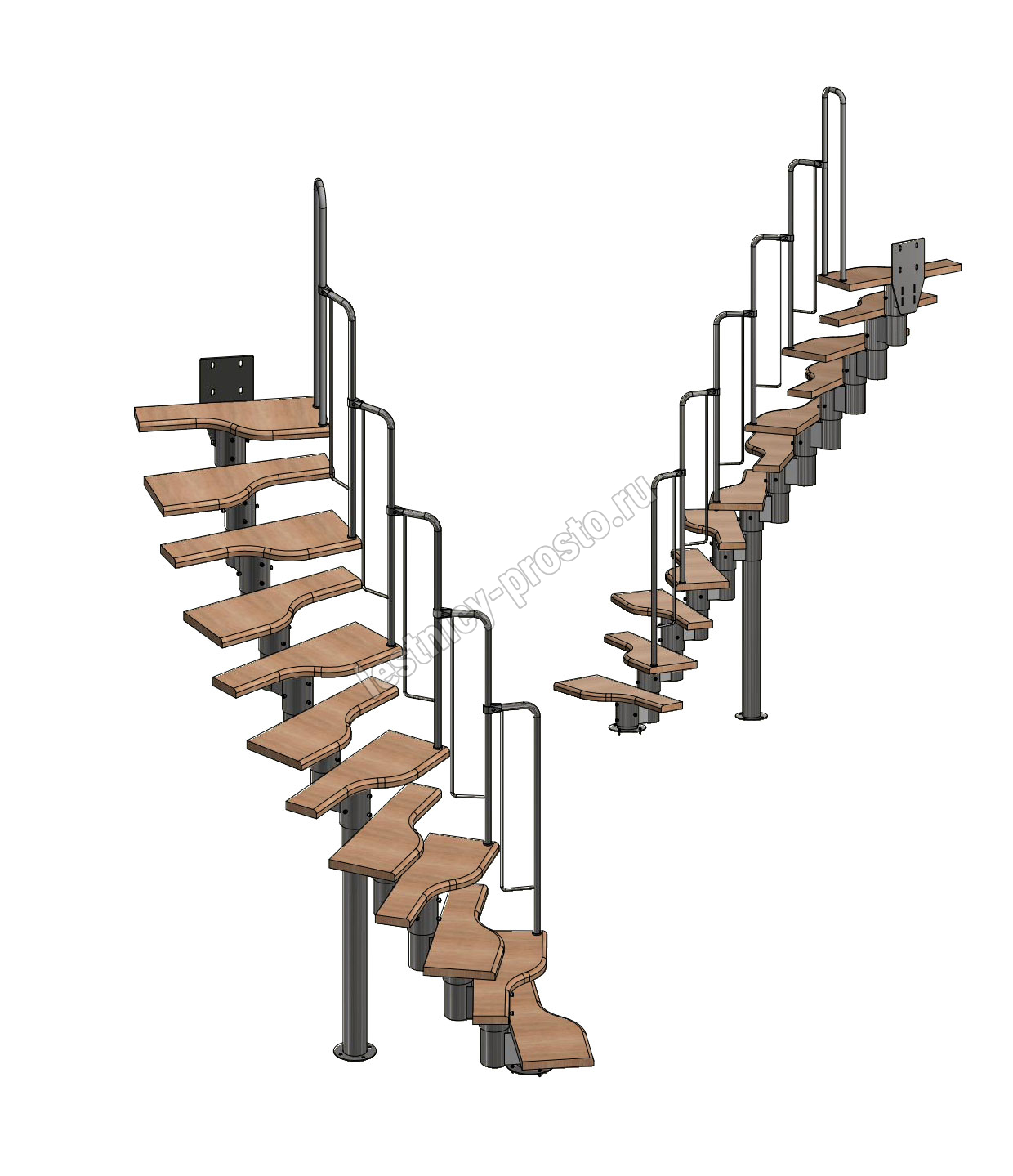 Лестница Prosto Urban White гусиный шаг 700 мм, h216-312 см (12 ступеней), бук