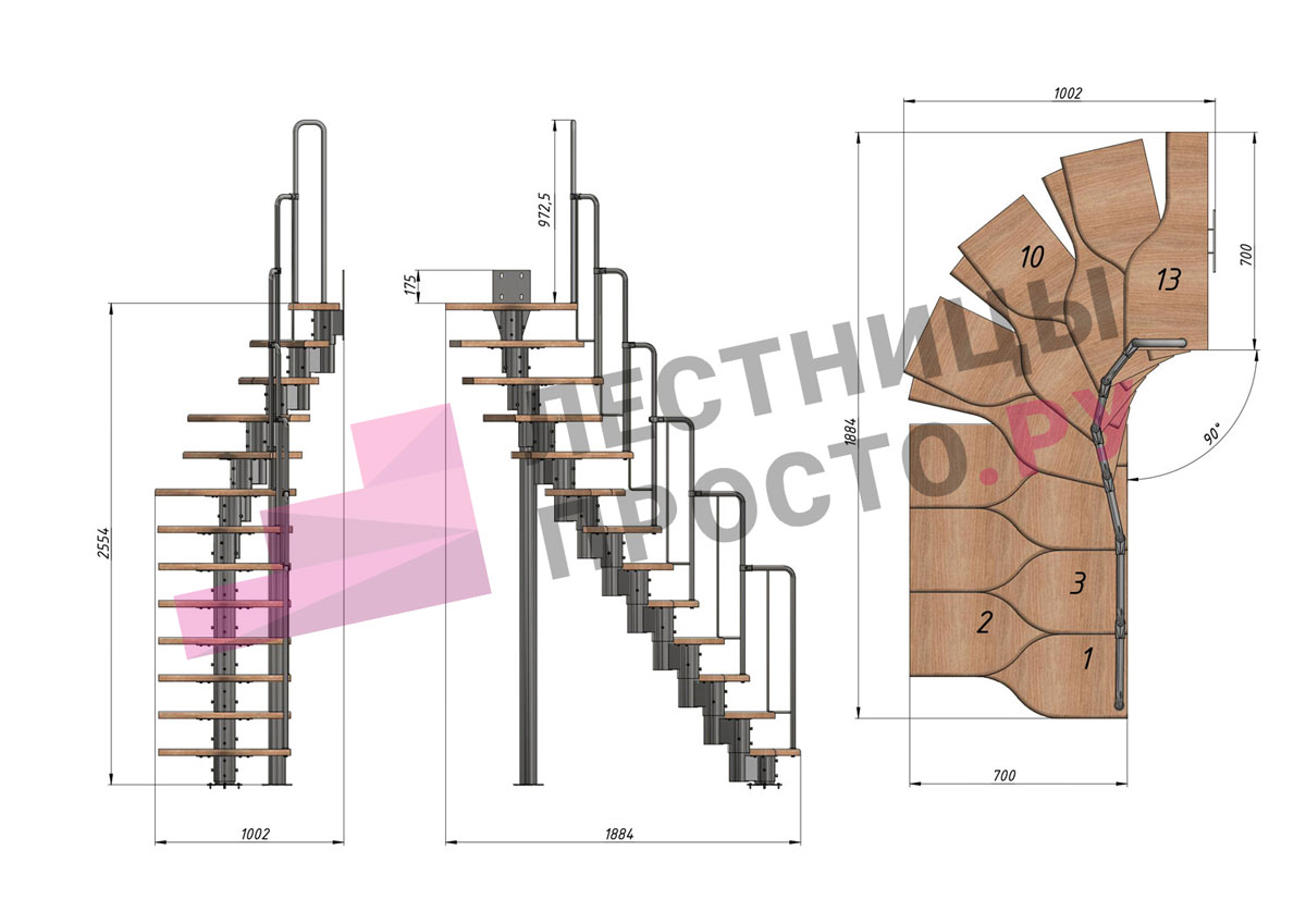 Высота лестницы 2340 - 3360 (13 ступеней) мм