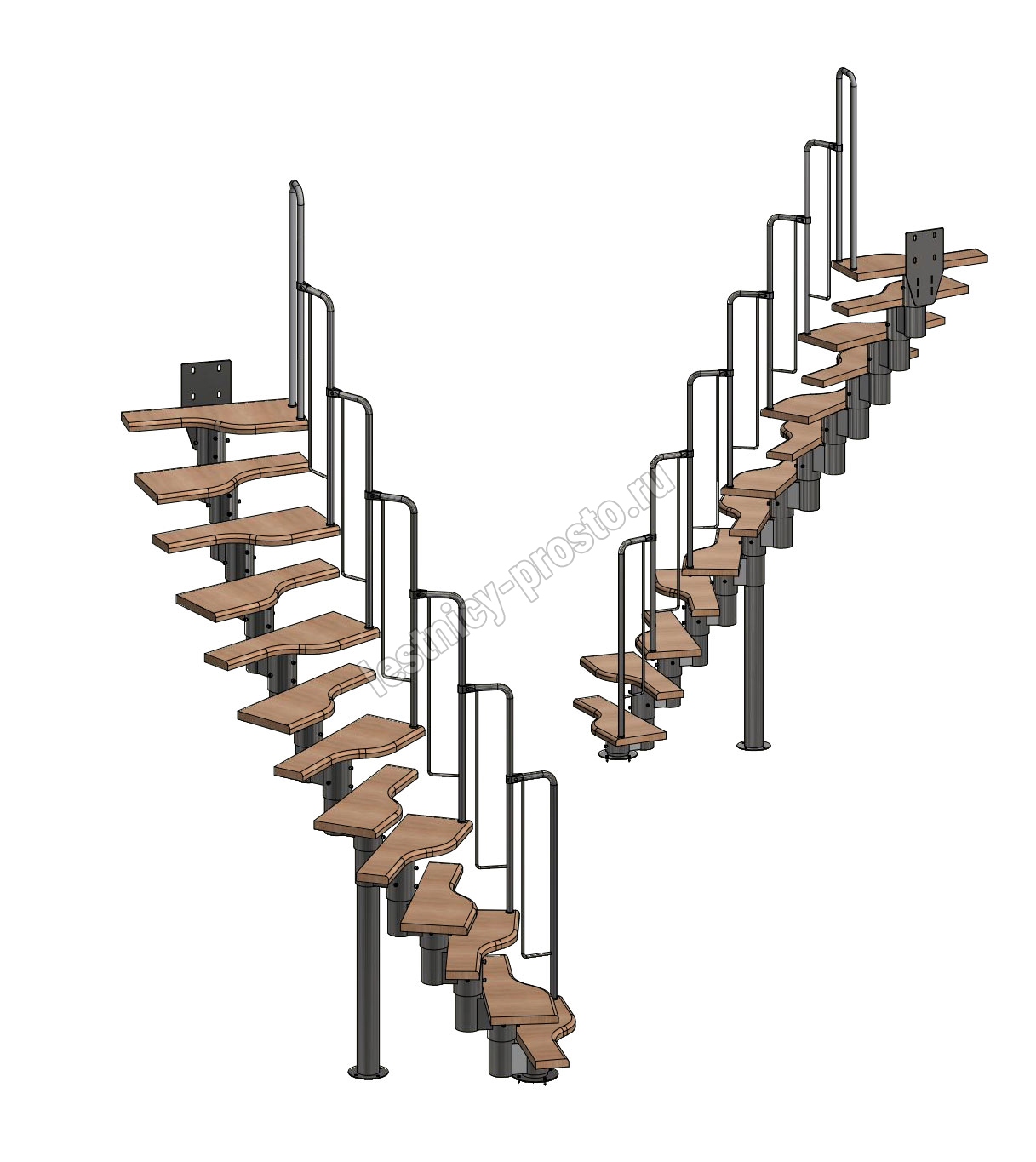 Лестница Prosto Urban White гусиный шаг 700 мм, h234-336 см (13 ступеней), бук
