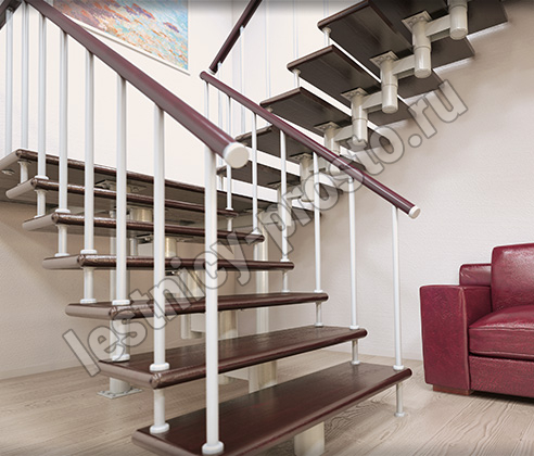 Каркас лестницы представляет собой набор модулей, которые комплектуются уже готовыми к монтажу.