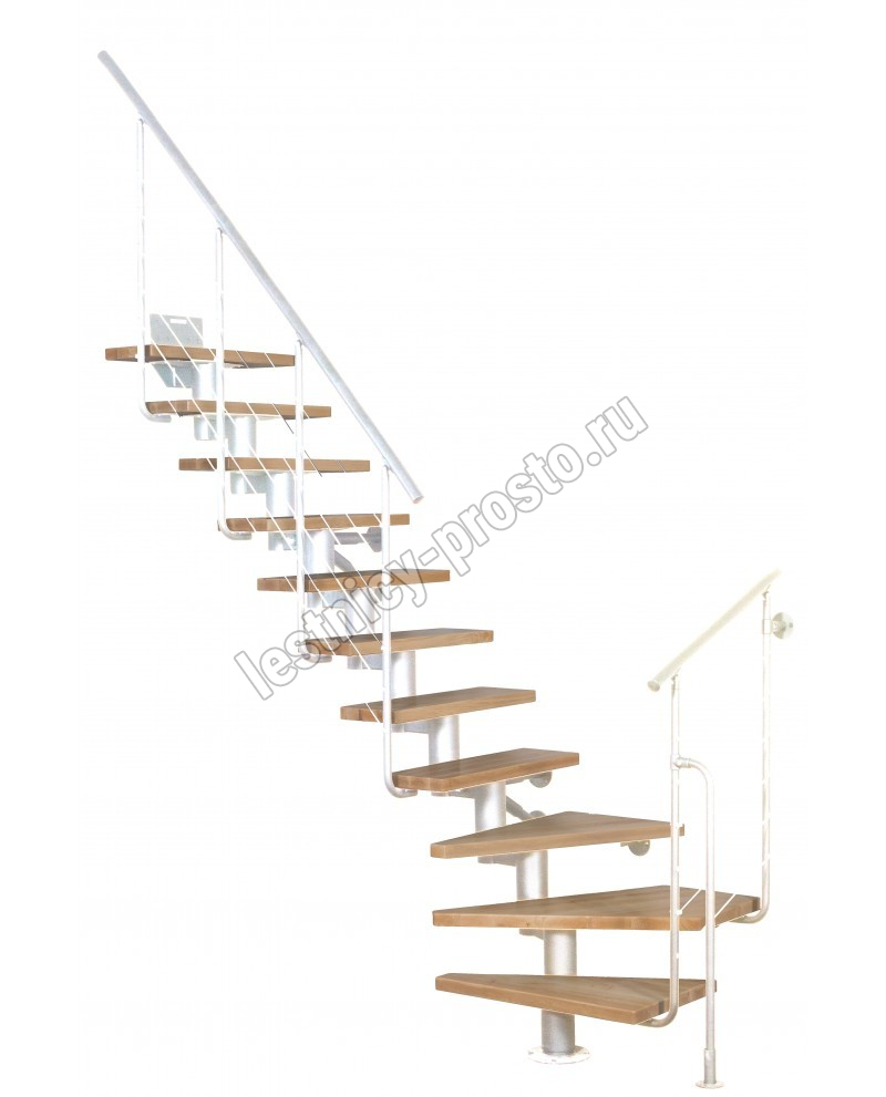 ATRIUM DIXI PLUS - это современная и удобная лестница, занимающая сравнительно мало места. В набор входят 11 конструктивных элементов и 11 ступеней из массивного лакированного дерева (8 прямых ступеней и 3 забежные ступени).