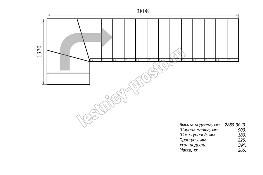 Модульная лестница Фаворит 180 2880-3040, Серый, Лиственница, Нержавеющая сталь