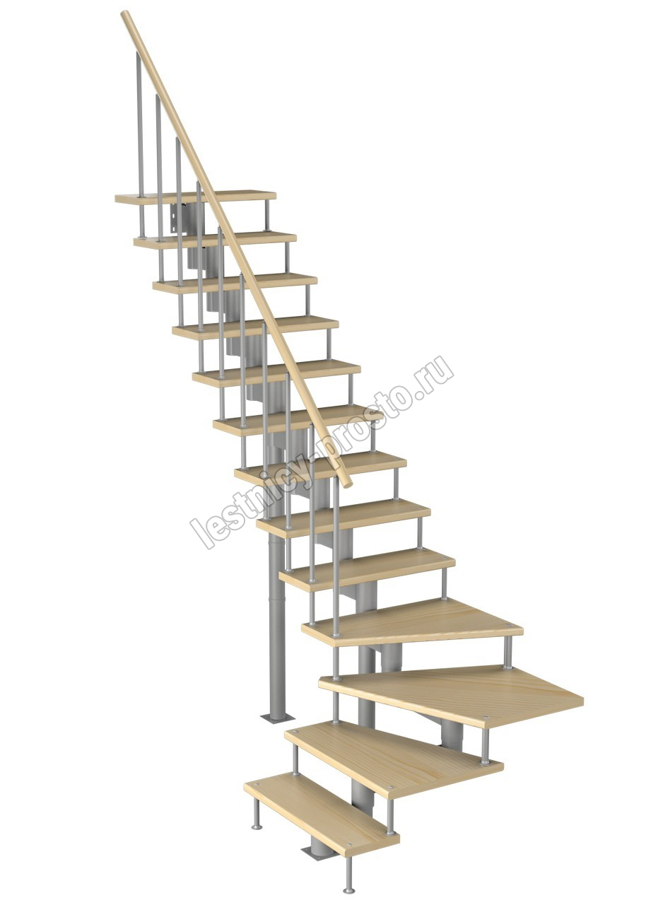 Модульная лестница Фаворит 225 2925-3055, Серый, Сосна, Крашеная