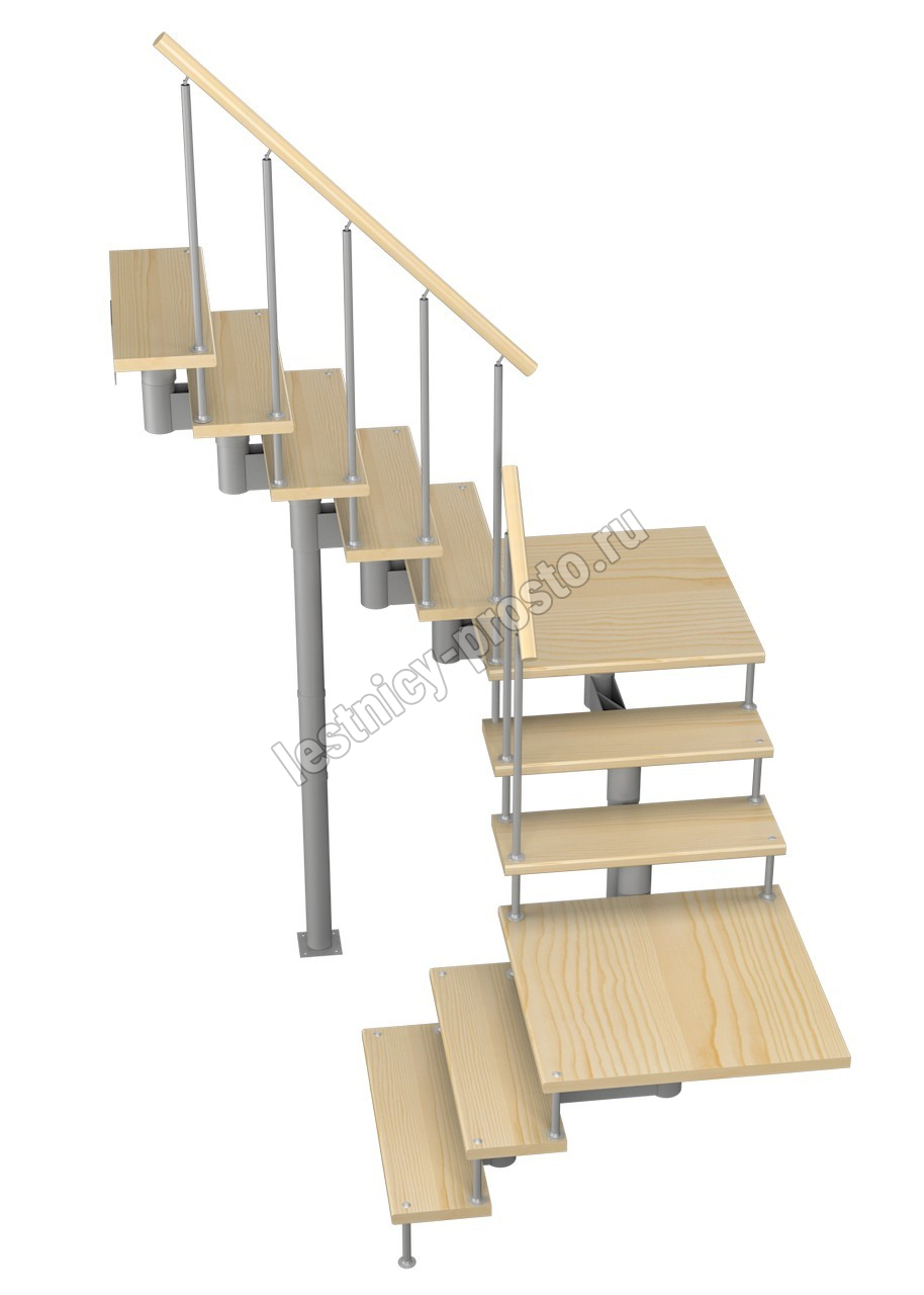 Модульная лестница Комфорт 225 2475-2585, Черный, Сосна, Нержавеющая сталь