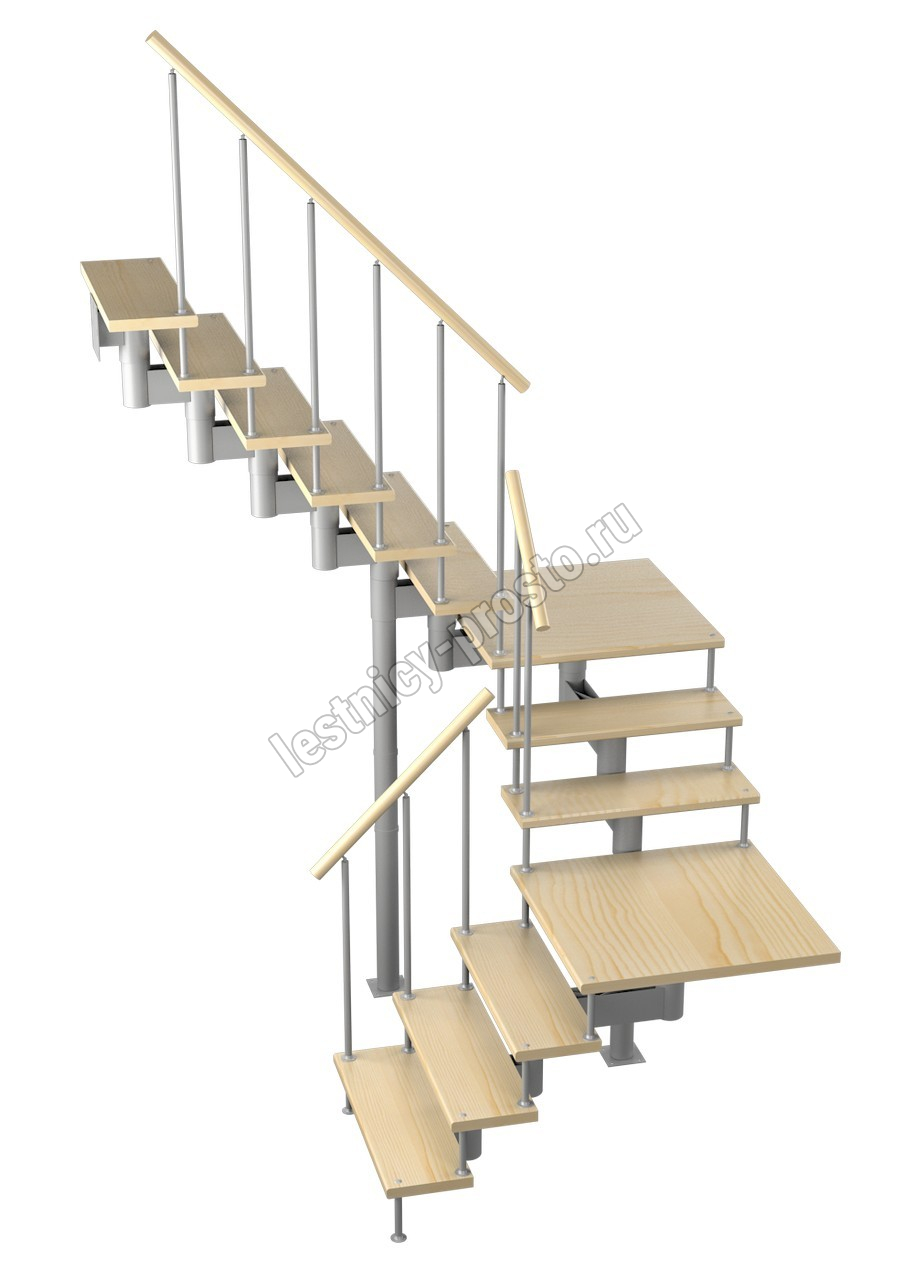Модульная лестница Комфорт 225 2925-3055, Серый, Лиственница, Нержавеющая сталь