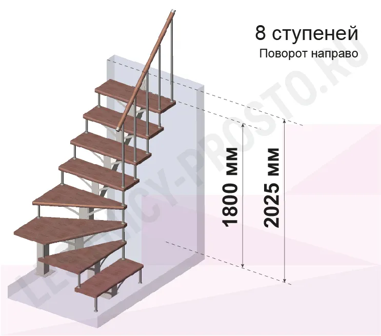 Лестница PROSTO MONO Г-образная h202.5 см, ступени хвоя
