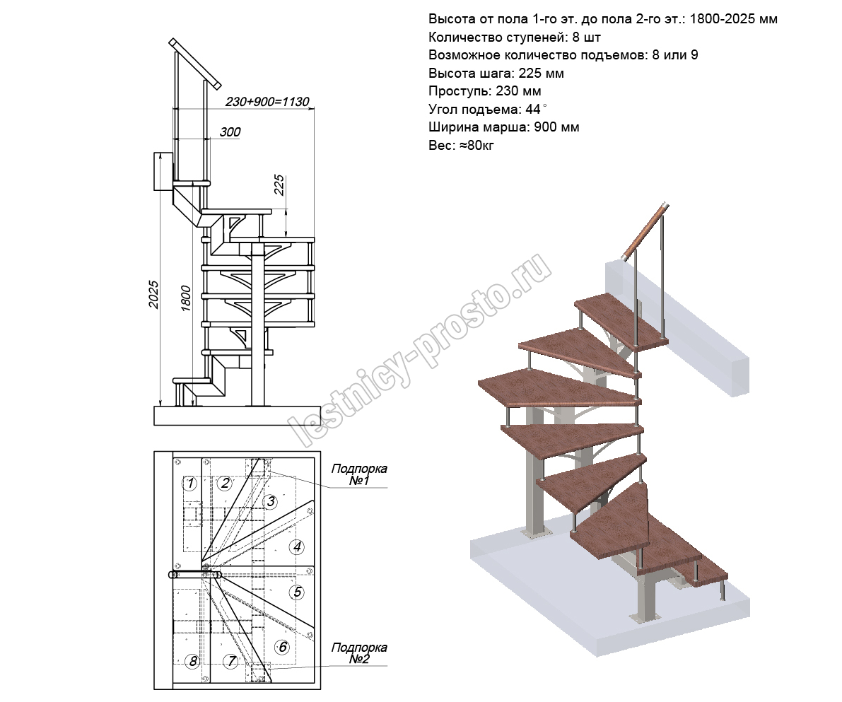 Высота лестницы 1800 - 3375 мм