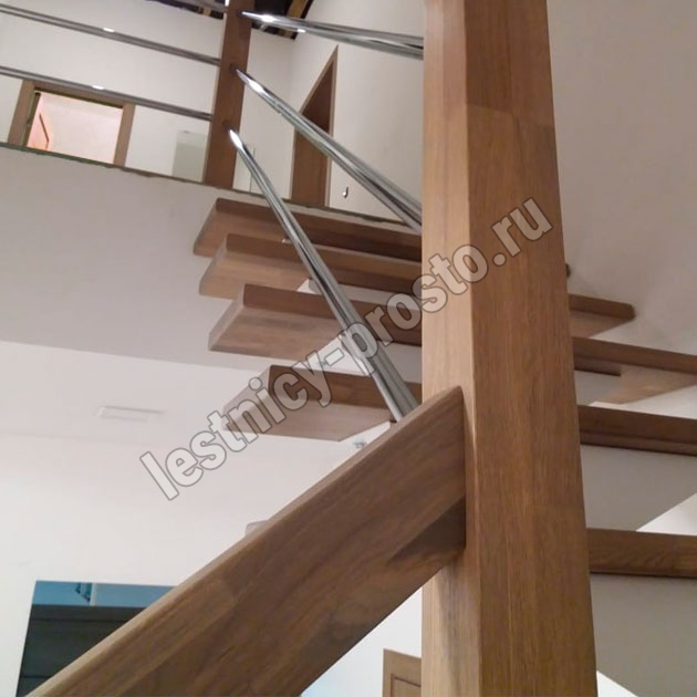 Ступени лестницы изготовлены из дерева категории А/В паркетной склейки без какого-либо покрытия.