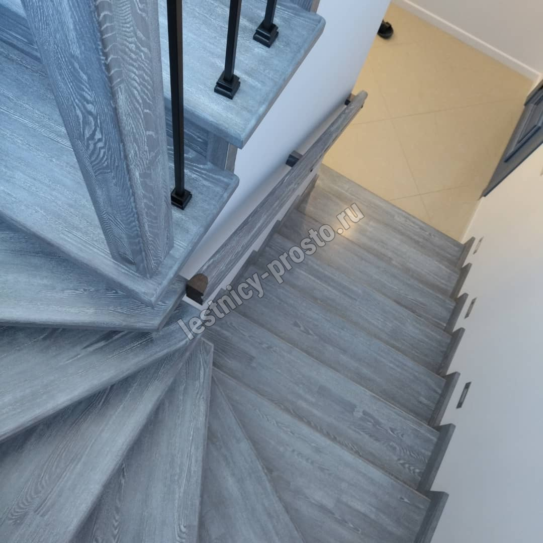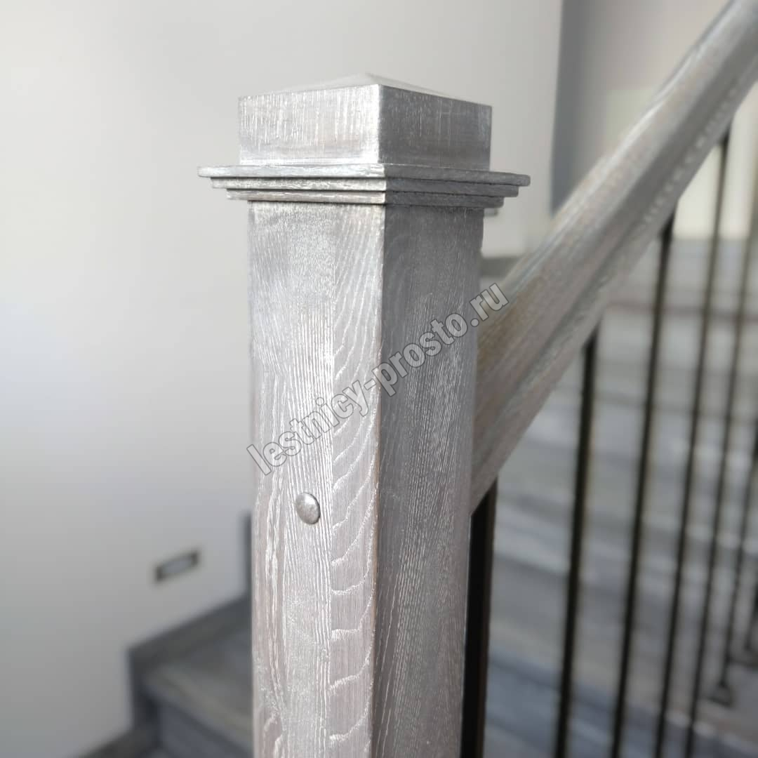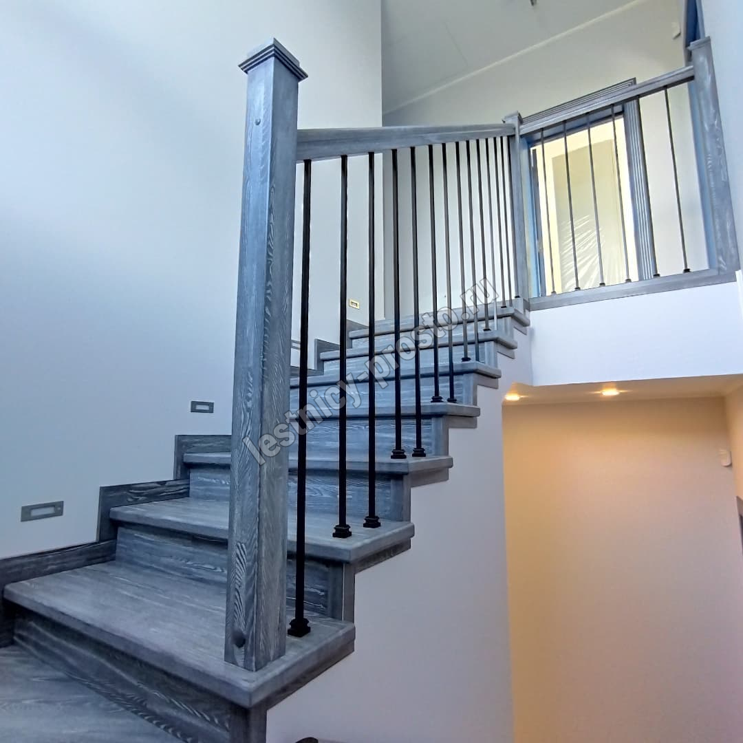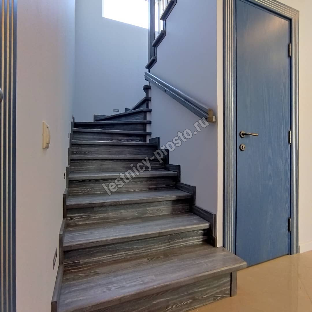 Подступенники, фальш-косоуры и сапожки (пристенной плинтус) выполнены из дуба.