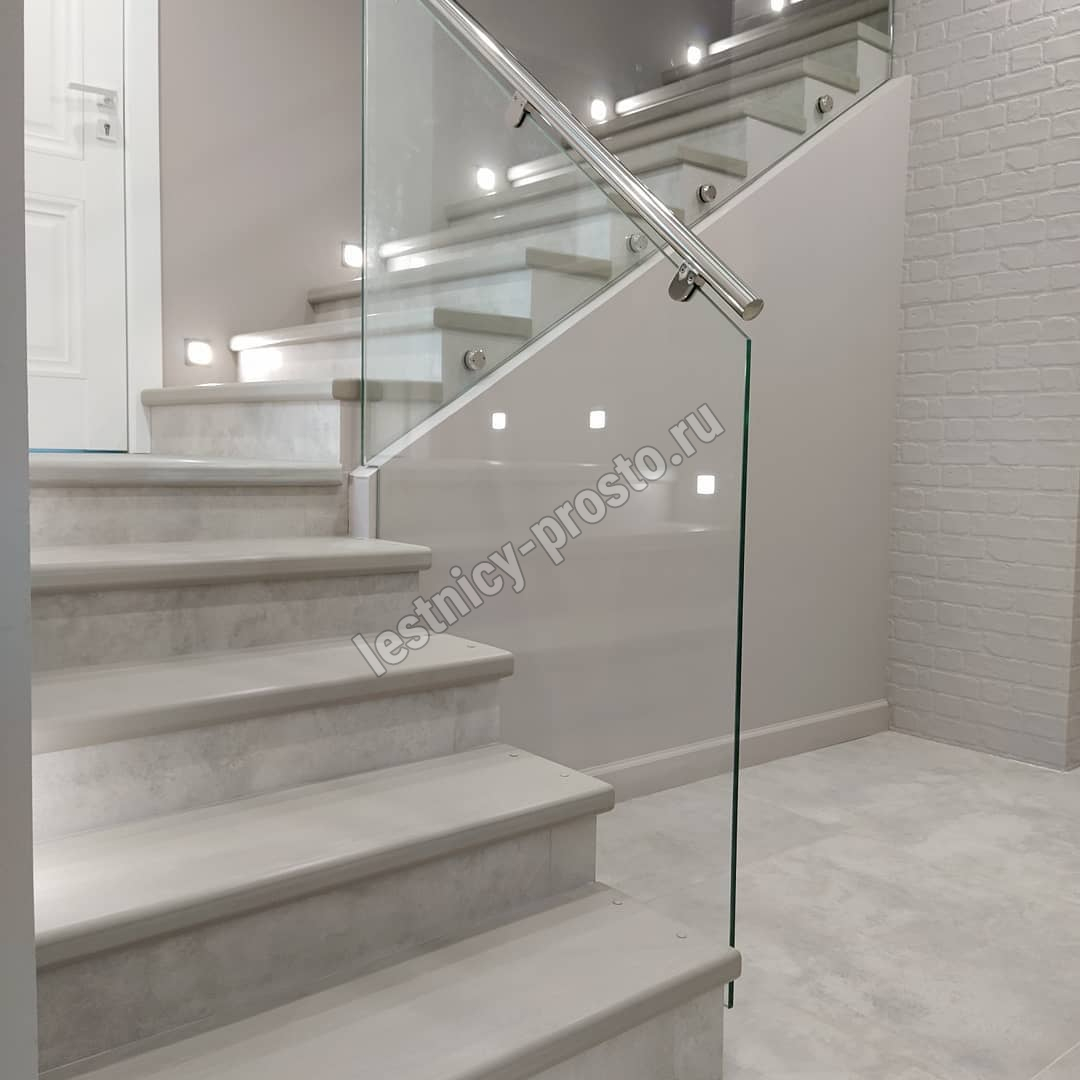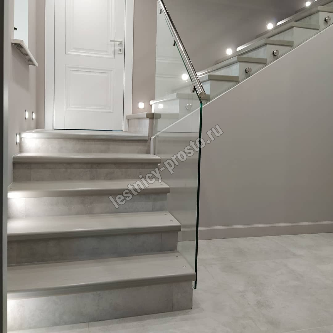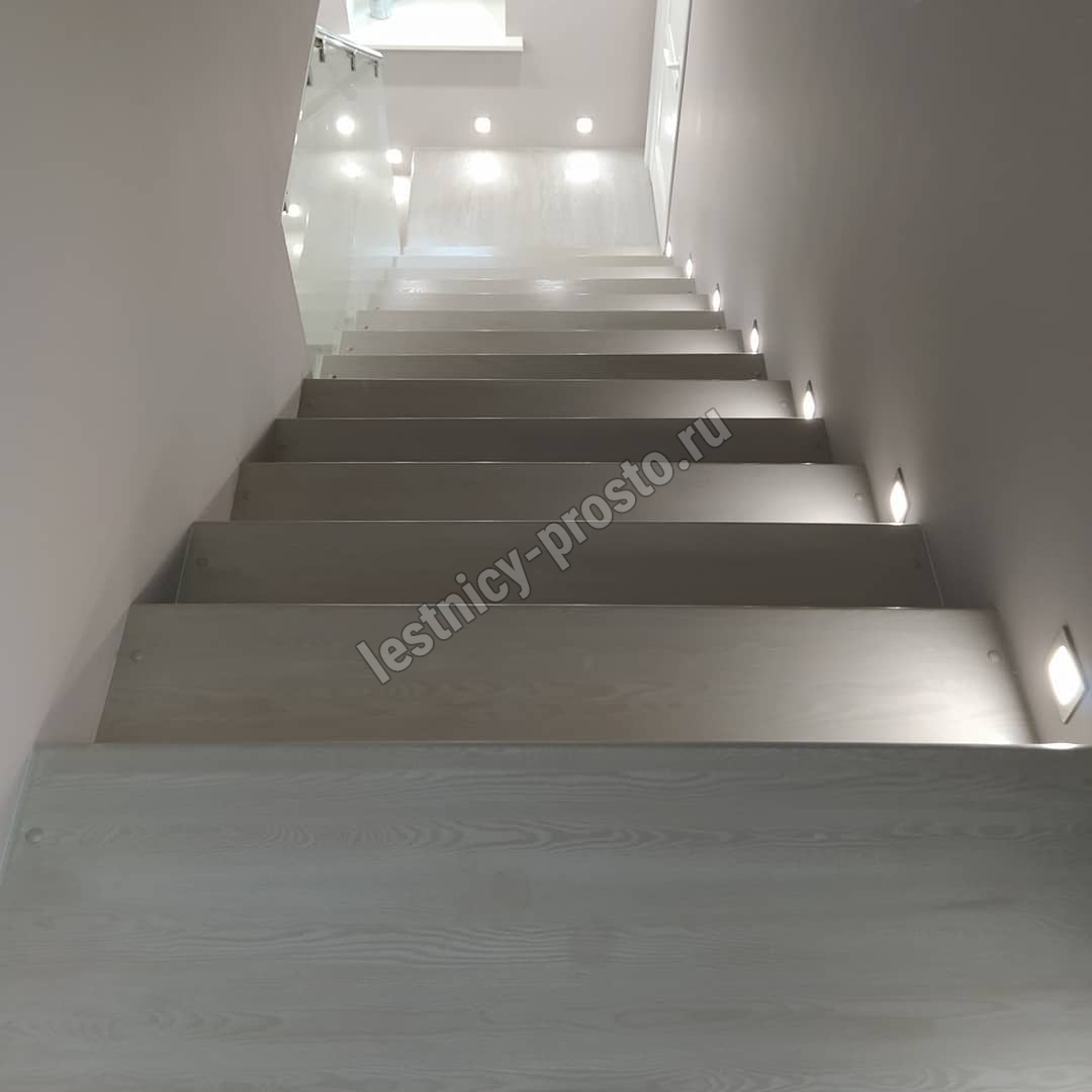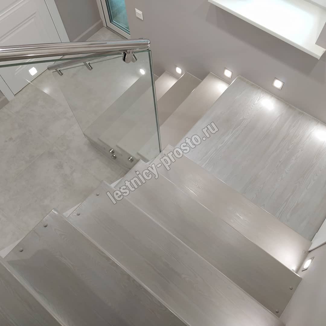 Лестница из стекла/дуба/керамогранита с подстветкой LP-1-53