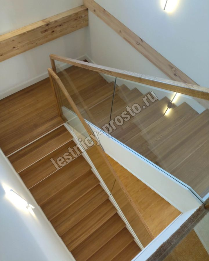 Лестница на второй этаж с ограждением из стекла LP-1-4