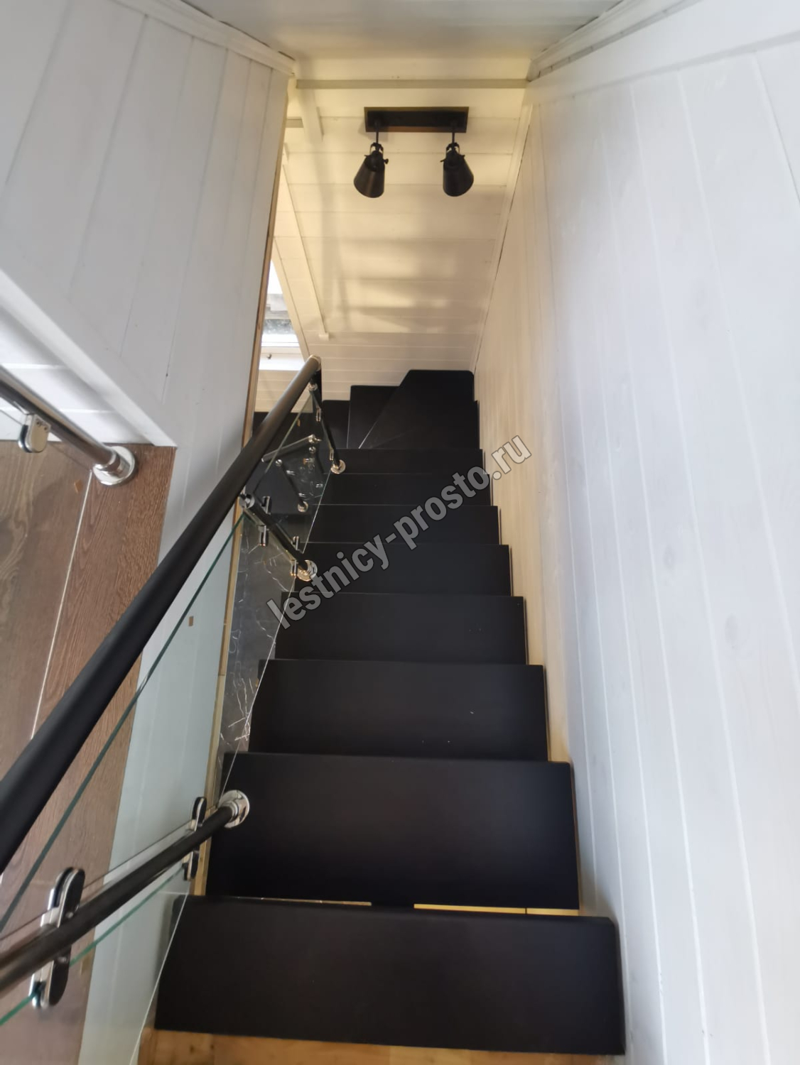 Стеклянная лестница на металлическом каркасе LP-3103