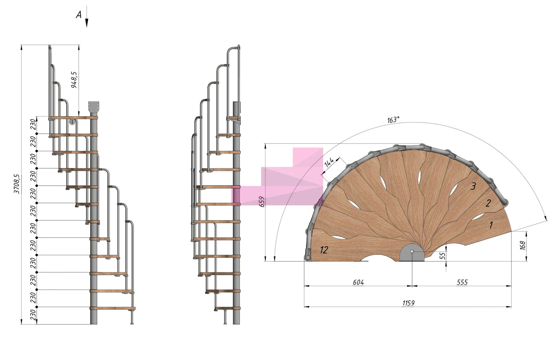 | Винтовая лестница PROSTO MINI 60×120 см, h322-345 см |